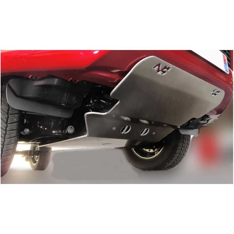 Protège tous les organes mécaniques entre le pare-chocs et l’arrière du berceau avant. Vis affleurantes - Trou de vidange. Montage sans modification du véhicule. Blindage aluminium de 8 mm d'épaisseur.