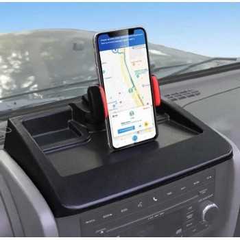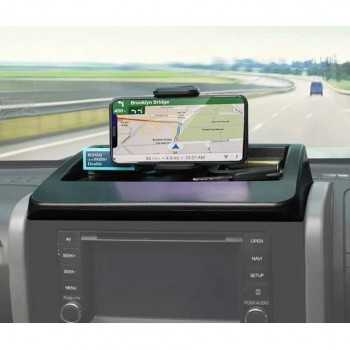Le système de montage multiple Dash comprend un double plateau, qui peut être utilisé pour ranger de petits objets, ainsi que des supports pour trépieds et douilles pour garder les téléphones portables, GPS, caméras et détecteurs de radar à la portée des deux le passager et le conducteur.