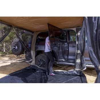 Conçu pour fonctionner comme une pièce entièrement fermée ou une moustiquaire, le nouvel auvent ARB Deluxe avec sol offre une protection contre les intempéries, une intimité et la protection contre les insectes. En arrivant à votre destination préférée, vous déployez l'auvent ARB et fixez simplement la pièce de l'auvent, enroulez les murs extérieurs et le panneau avant en maille pour révéler la vision complète et ininterrompue de votre environnement naturel à l'ombre de votre auvent.