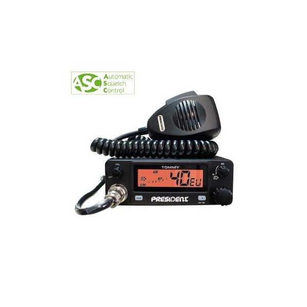 COMMANDES ET FONCTIONS 40 canaux AM multi-normes européennes - Réglage volume M/A - Afficheur LCD multi-fonctions - Squelch manuel et automatique (ASC) - Sélecteur de canaux - Filtre anti-parasites ANL intégré - Fonction Lock verrouillage des touches - Beep de touches commutable - Fiche micro façade - Microphone - Prise jack haut-parleur ext. DIMENSIONS - Largeur 125 mm - Hauteur 45 mm - Profondeur 150 mm dimensions hors connecteur d'antenne et/ou dissipateur