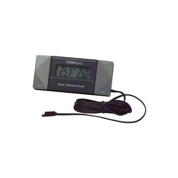 Indique la température intérieur et extérieur et vous donne également l'heure. Muni d'un écran de visualisation qui s'éclaire. Fixation par autocollant. Deux piles plates de 1,5 V sont livrées avec le dispositif. Dimensions 86 x 38 x 15 mm