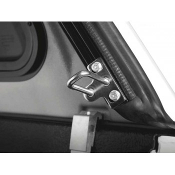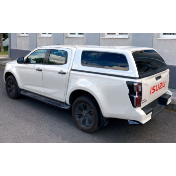 Plastique ABS à double coque avec support de cadre métallique. Léger, très solide et entièrement recyclable. Verrouillage central, lunette arrière teintée avec désembuage. Intérieur lavable au jet d'eau, très résistant. Feu stop LED intégré, et éclairage intérieur automatique. Fenêtre avant coulissante pour une meilleure ventilation. Protection contre les intempéries grâce à des joints préinstallés. Installation sans perçage, faisceau de câblage Plug&Play. Barre de toit en option (capacité de charge de 75 kg)