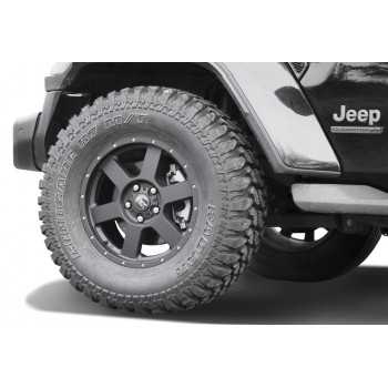 Pour Jeep Wrangler JK (2007-2017). Jante robuste testée pour Charge maxi par roue de 1250 kg. Vendu avec enjoliveur central et Certificat de pièces allemand TÜV Les combinaisons roue-pneu autorisées ainsi que les conditions/instructions du certificat de pièces TÜV doivent être respectées.