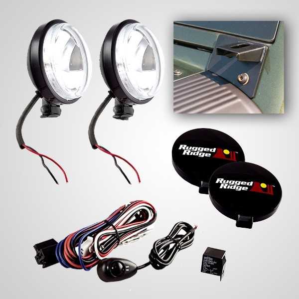 Nouveau Comprend: supports de fixation de pare-brise noirs, 2 lumières minces de 100 watts, couvercles et faisceau de câbles avec interrupteur. Le kit comprend les deux phares, le faisceau et les supports de couleurs noir. Diamètre 16.5 mm