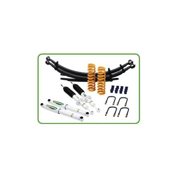 TOUS LES KITS DE RESSORTS À LAMES CONTIENNENT : Ressorts, amortisseurs, boulons en U et bagues. TOUS LES KITS DE RESSORTS hélicoïdaux contiennent : des ressorts et des amortisseurs. Ironman 4x4 propose également divers composants optionnels améliorant encore les performances de la suspension ou à des fins de correction de la géométrie. Consultez la liste des véhicules pour plus de détails spécifiques au modèle. Ces composants comprennent des manilles et des broches graissables, un amortisseur de direction, une correction de roulette, des packers de garniture et des bras de suspension.