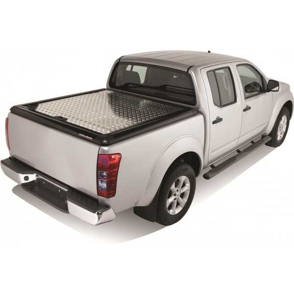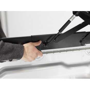 Système de sécurisation de la porte de benne sans perçage. Montage/démontage facile pour l'utilisateur final afin de charger les objets encombrants. Suppression de la "plaque avant", ce tonneau cover devient l'unique modèle Aluminium du marché couvrant l'intégralité de la benne. Nouvelle serrure avec pad ABS intégré au profil Aluminium. Et toujours les nombreux accessoires : roll bar inox / barres de toit / porte skis et vélos.